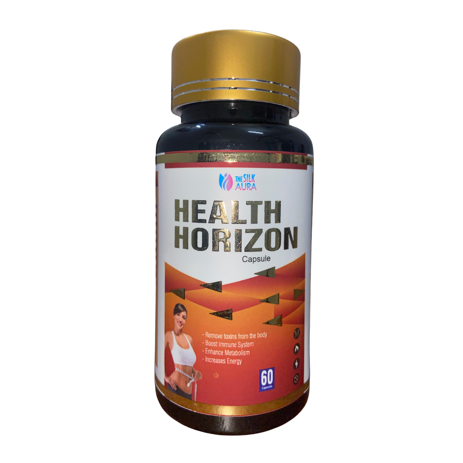 Health Horizon Capsule by The Silk Aura is formulated with natural ingredients that help remove toxins, boost the immune system, enhance metabolism, and increase energy levels for overall well-being.